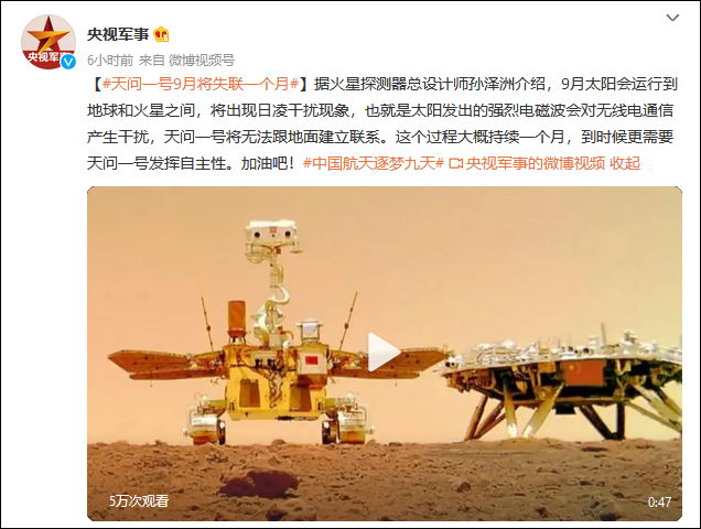 近日我国的火星探测器总设计师孙泽洲表示:9月份的时候火星会运行到太阳背后,这会导致日凌干扰现象的出现,太阳发出的强烈电磁波将会干扰无线电通信,天问一号和地球的通信会中断大约一个月的时间。那么日凌干扰现象是个啥意思呢?美国的火星探测器会不会受到影响呢?