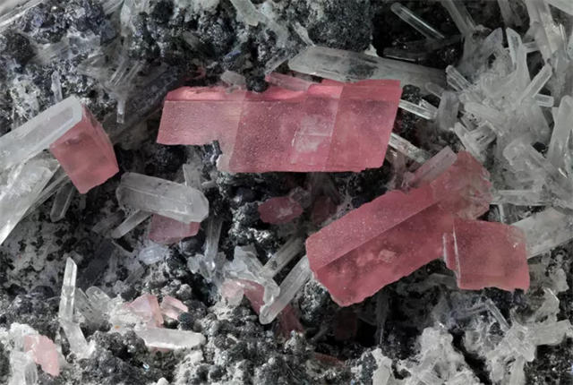 菱锰矿也称为覆盆子晶石,是一种碳酸盐矿物,在盐酸中会轻轻起泡。它通常出现在与铜和铅矿石相关的矿脉中,很少也会出现在伟晶岩中(可能是灰色或棕色)。只有玫瑰石英可能会与它混淆,但菱锰矿的颜色更强烈更温暖,硬度更低。