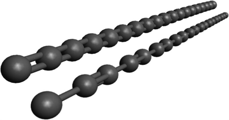 碳炔(Carbyne)是一种一维的碳原子链,它非常坚硬,硫化碳炔的抗拉强度是金刚石2倍,刚度是金刚石的3倍。但是这种物质非常不稳定,难以批量合成。